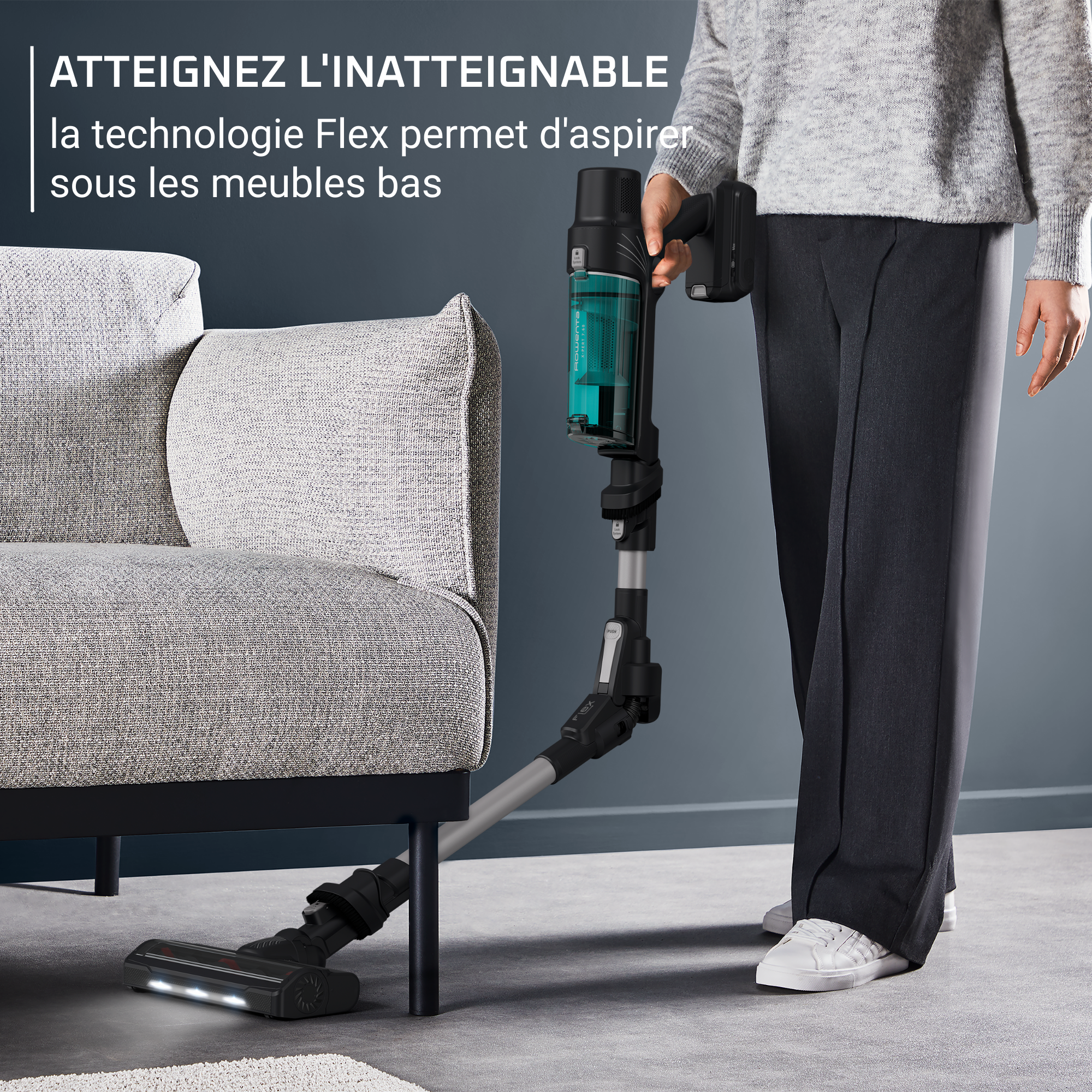 - Technologie Flex : Le tube se plie pour atteindre la poussière sous les canapés et lits sans effort.