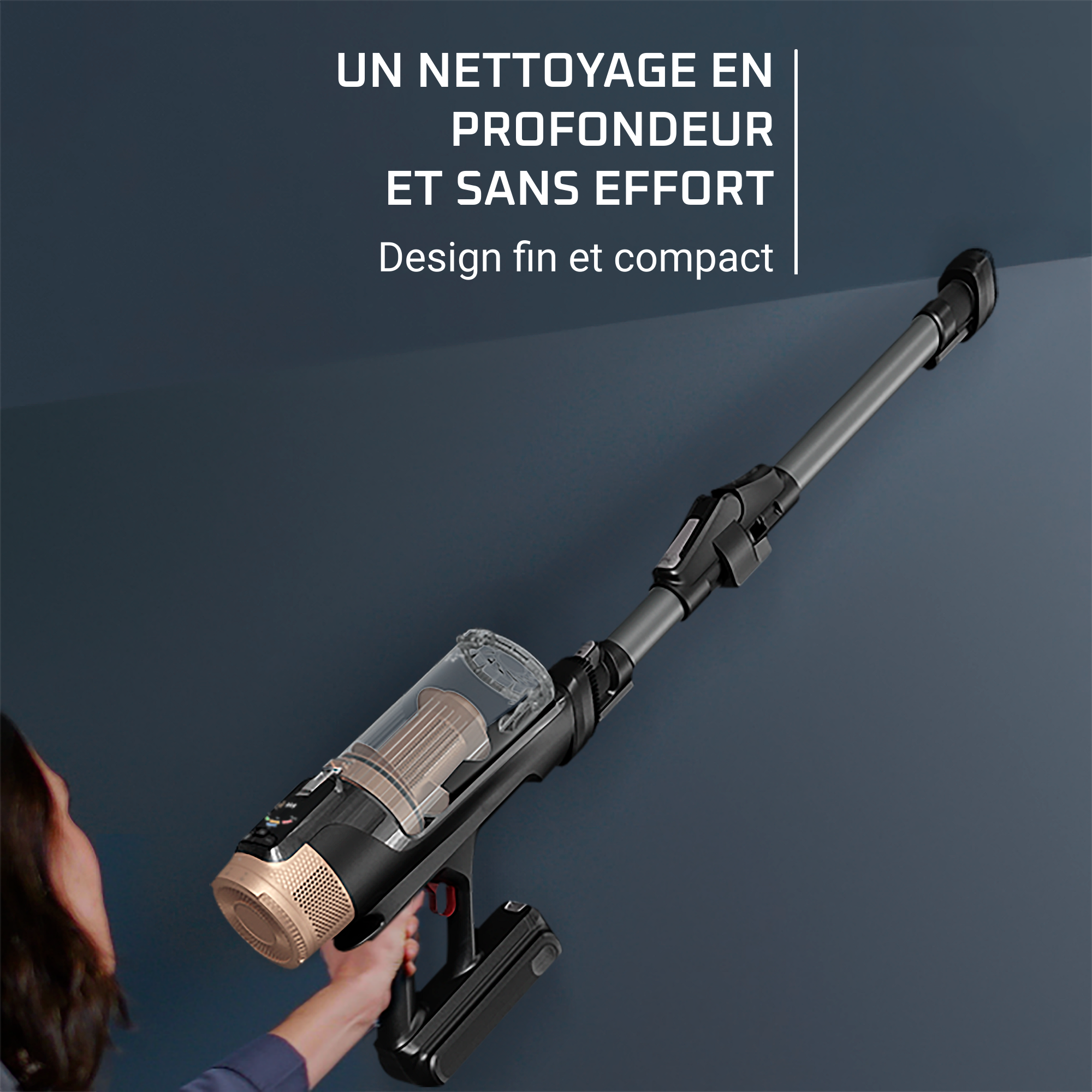 - Technologie FLEX : Le tube flexible vous permet de nettoyer sous les meubles bas sans avoir à vous baisser, assurant une couverture totale de votre espace.